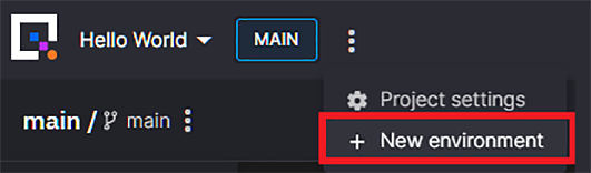 • If you're editing an existing project, open the project settings and click + New environment.